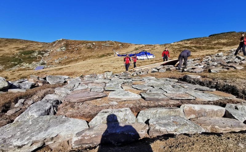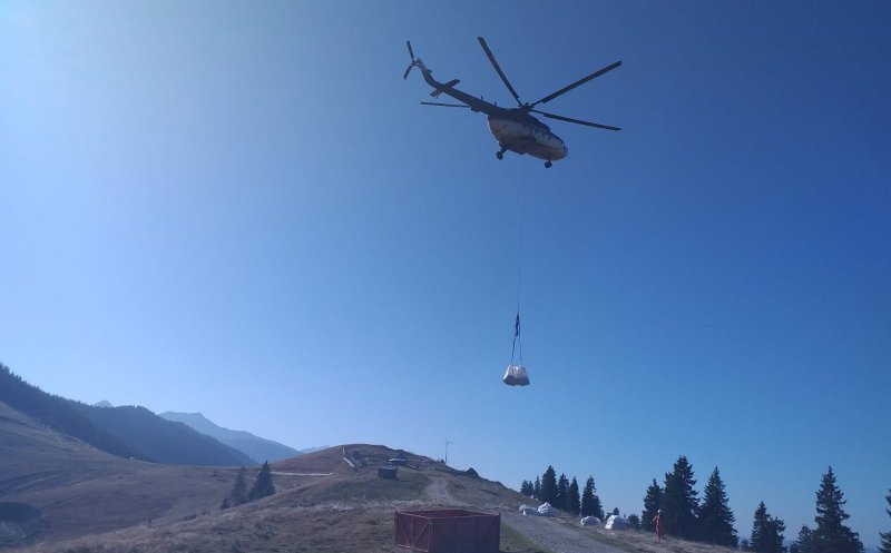 Un echipaj de piloți de la Unitatea Specială de Aviatie Cluj-Napoca, a transportat cu elicopterul 10 tone materiale și unelte necesare construirii unui refugiu montan în Parcul Național Munții Rodnei.