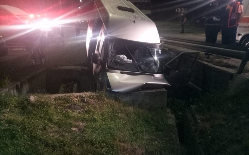 "DN1C 15.07.2019 ora 01:46 km 9+600 m< un bărbat de 50 de ani, cetățean din Republica Moldova, a condus microbuzul, nu a adaptat viteza de deplasare la condițiile de drum, a pătruns în sensul giratoriu, a sărit peste acesta și a părăsit partea carosabila prin dreapta sensului său de deplasare, respectiv înspre CJ-Napoca, și a intrat în coliziune frontală cu un canal de colectare a apelor pluviale. O femeie de 63 de ani, pasageră, a suferit leziuni ușoare", transmite IPJ Cluj.