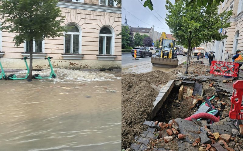 Video Foto O conductă de apă s-a spart în Piața Avram Iancu din Cluj. Locuitorii din Gheorgheni și Sopor, afectați