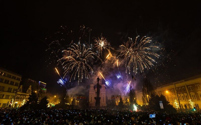 Peste 10.000 de clujeni au participat la focul de artificii organizat de Revelion în Piaţa Avram Iancu