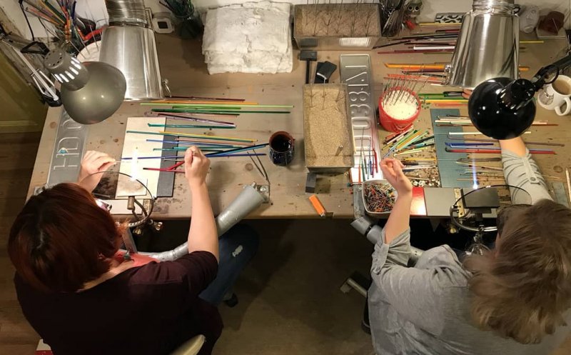 Tinerele au început să prelucreze sticlă de Murano în 2010, iar astăzi lucrează în atelierul situat în inima Clujului: în Palatul Jósika (Piața Unirii, numărul 10), apartamentul 3. Aşa s-a născut Atelierul de Murano. De aproximativ 6 ani, Iza și Andreea au trecut la nivelul următor şi realizează și figurine specifice sărbătorilor de iarnă, pe care, cu ajutorul unui meșteșugar sticlar din Târgul Mureș, le transformă în globuri unicat sau personalizate după placul clienţilor.
