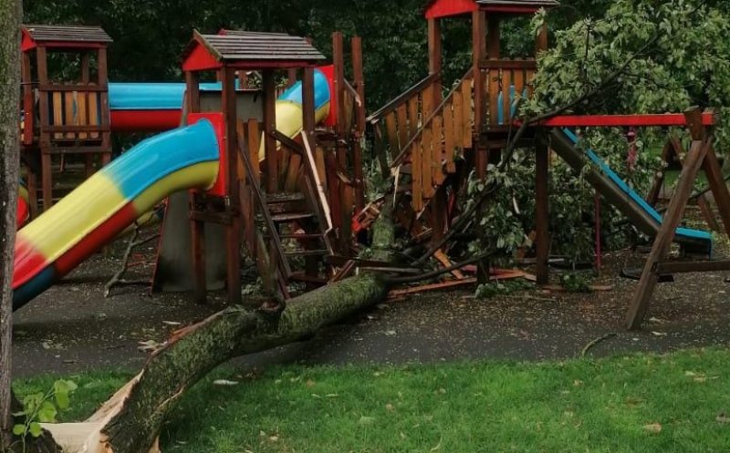 Video Foto Prăpăd în Dej după furtună: acoperişuri distruse, copaci doborâţi, străzi inundate