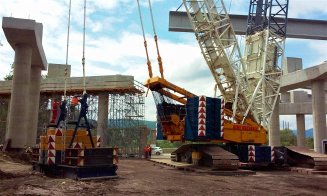 Foto Reportaj de la "volanul" monstrului, care poate ridica 600 de tone, folosit la de instalarea grinzilor peste Someş