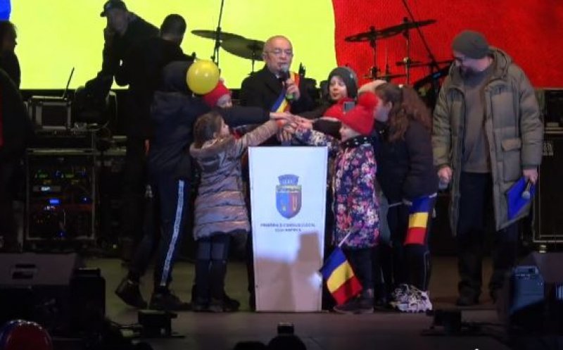 Luminițele de sărbători au fost aprinse la Cluj-Napoca, vineri seara, de către edilul Emil Boc, ajutat de câțiva copii.