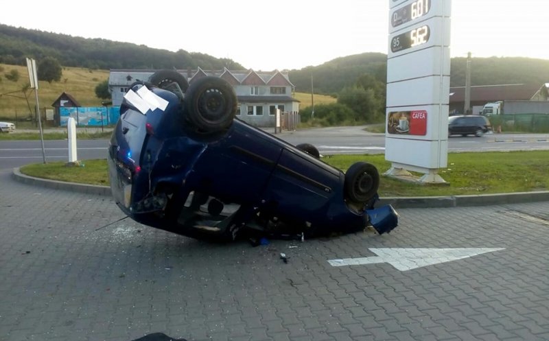S-a răsturnat cu maşina într-o benzinărie. Şoferul a fost rănit şi transportat la spital.