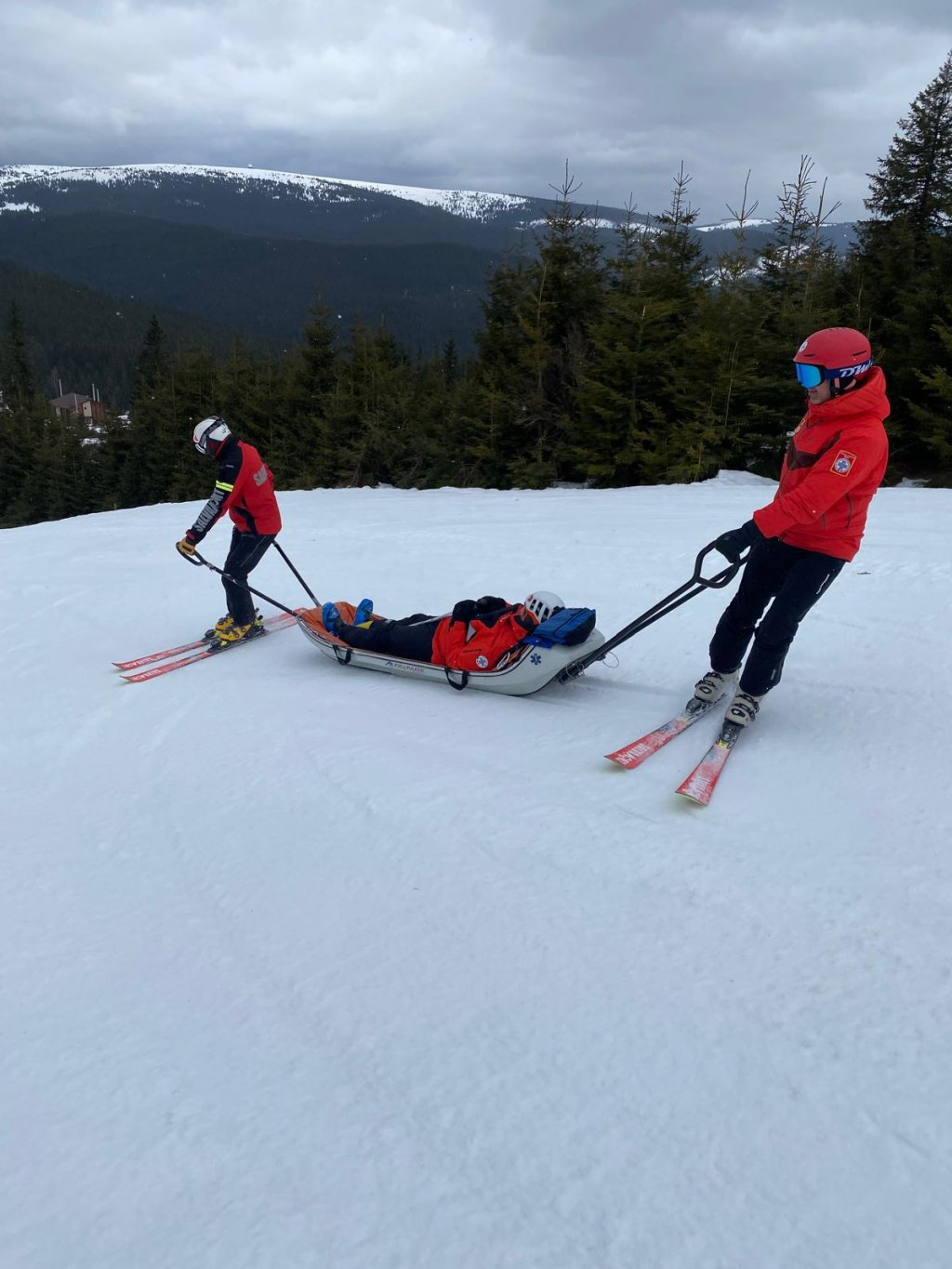 Partea medicală a evaluării a inclus acordarea primului ajutor unui accidentat cu traumatism complex pe pârtie, stabilizarea victimei și transportul acesteia cu targa tip akija și snowmobil-ul până la baza pârtiei, unde era predată serviciului SMURD. Exercițiul a fost coordonat de medicul primar urgentist Ziana Motora, implicată voluntar în cadrul serviciului.