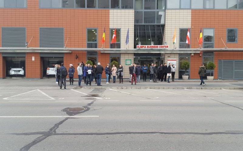 Angajaţii companiilor din Piaţa 1 Mai au protestat în faţa Coratim Business Center: vorbim despre Pitech+, Ecart, Diego, Blitz Imobiliare şi Inter Cars.