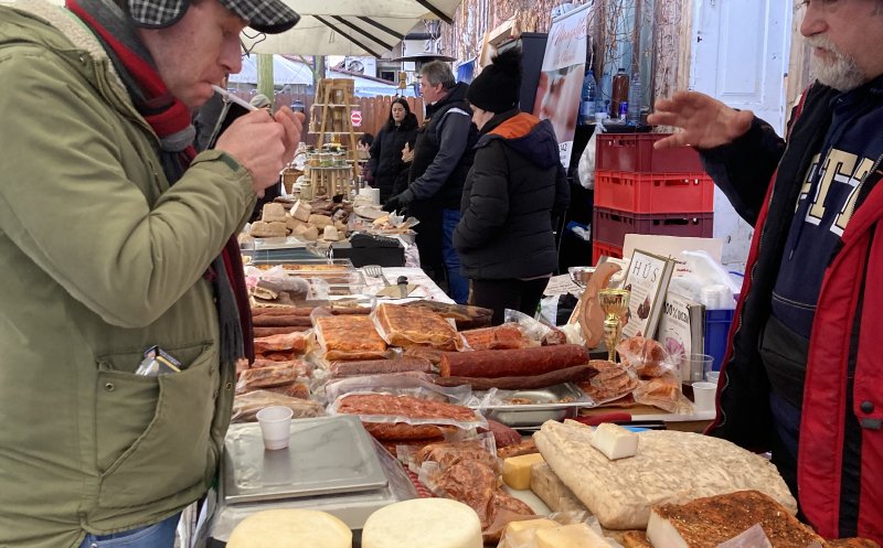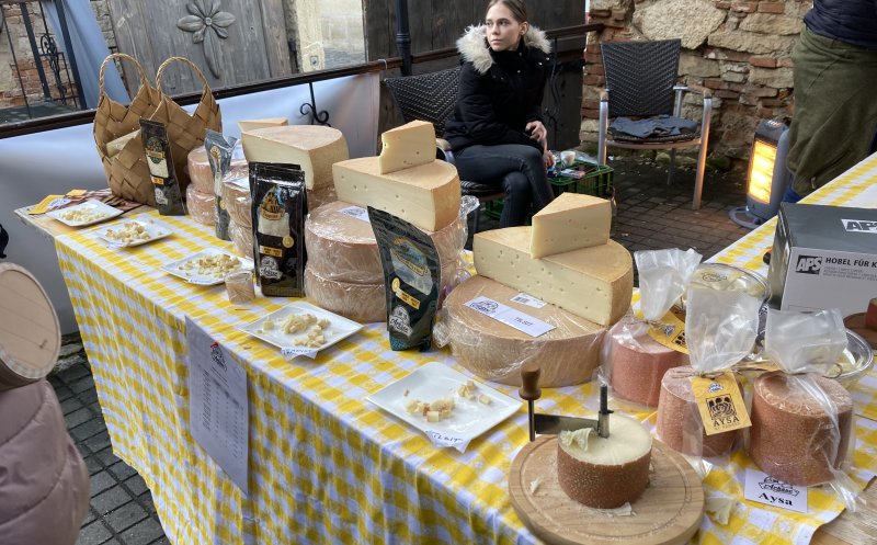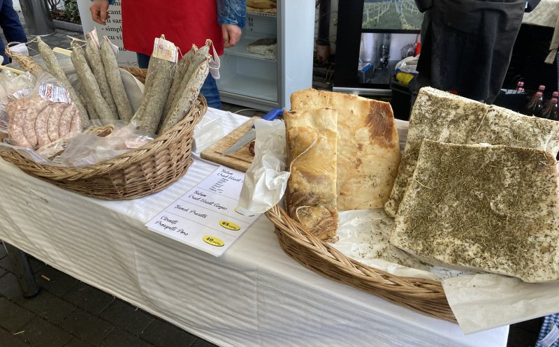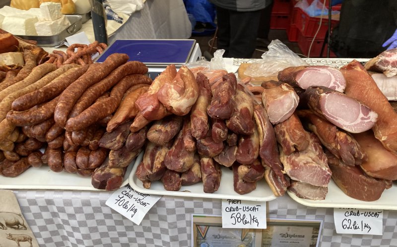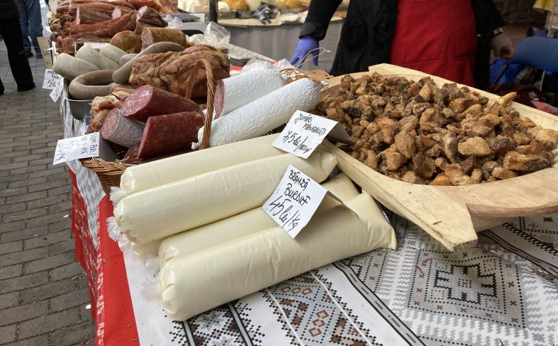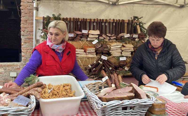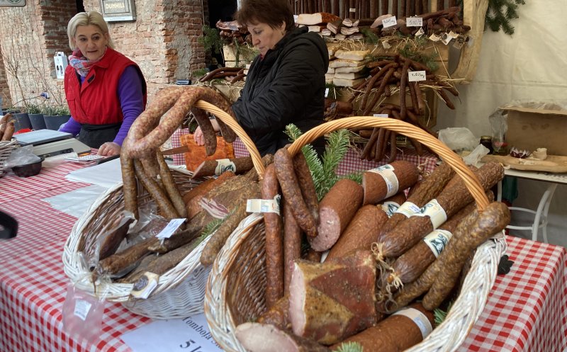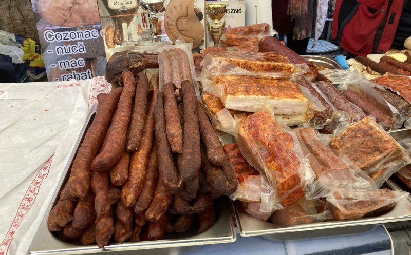 Vizitatorii târgului pot cumpăra produse din carne de porc, brânză, pâine de casă, zacuscă, murături, vin, țuică, prăjituri. Toate de la producători din țară.