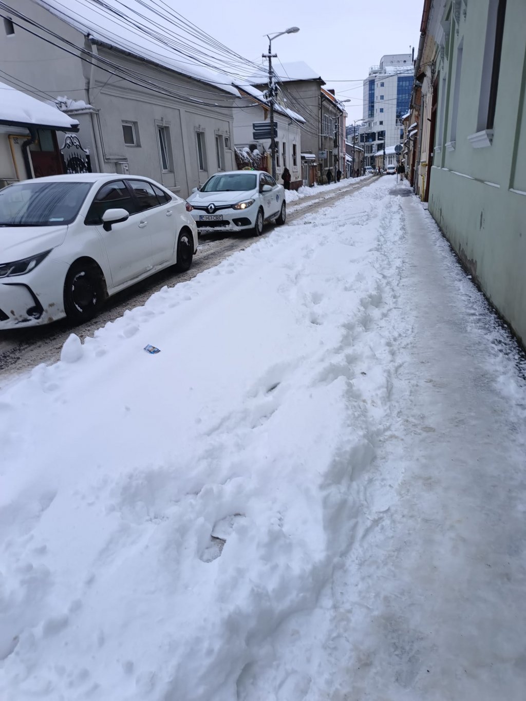 De asemenea, în cartierul Andrei Mureșanu, un șofer a filmat străzile, iar imaginile surprinse arată cum unii pietoni aleg să circule pe carosabil, deoarece trotuarele sunt acoperite de zăpadă și greu practicabile.