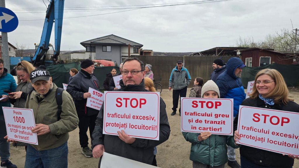 Locuitorii din Someșeni din Cluj-Napoca au ieșit din nou în stradă, joi, 19 martie 2026, la un nou protest cu scopul de a scoate traficul greu de pe străzile cartierului, care le produce disconfort și care duce la crăparea pereților caselor și la distrugerea tramei stradale.