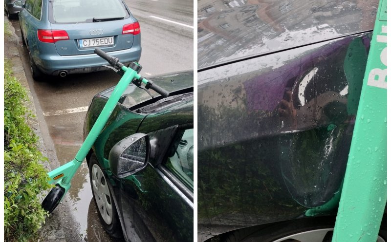 Un caz similar, însă mai grav, s-a petrecut în octombrie anul trecut, când un alt șofer din Cluj s-a trezit cu luneta mașinii spartă de o trotinetă electrică.