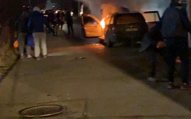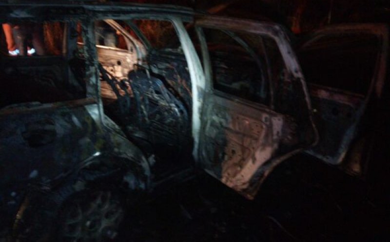 Torță pe roți în Cluj! O mașină a ars în totalitate, lângă o stație de pompare gaz