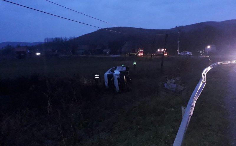 Foto Un microbuz s-a răsturnat în Apahida. Opt persoane au fost transportate la spital