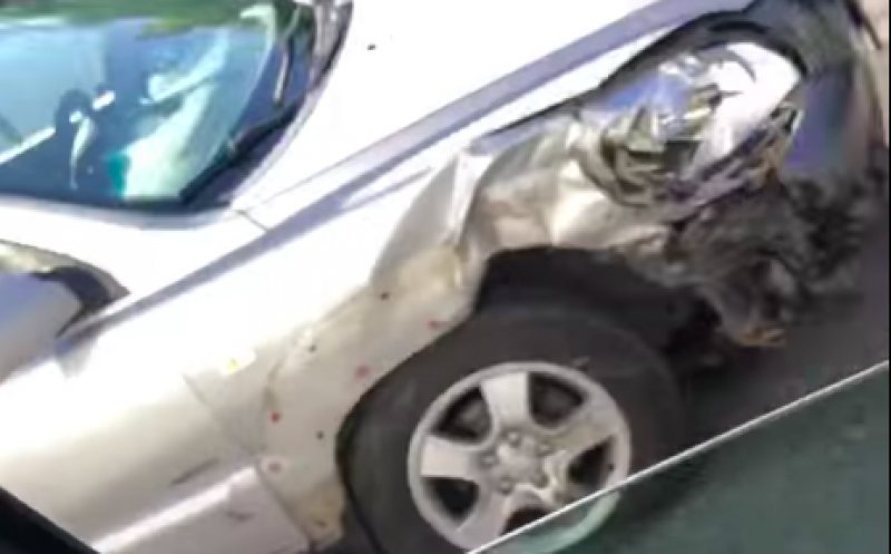 Un șofer neatent de 20 de ani a intrat în mașina de pe banda alăturată. Mașinile, făcute praf