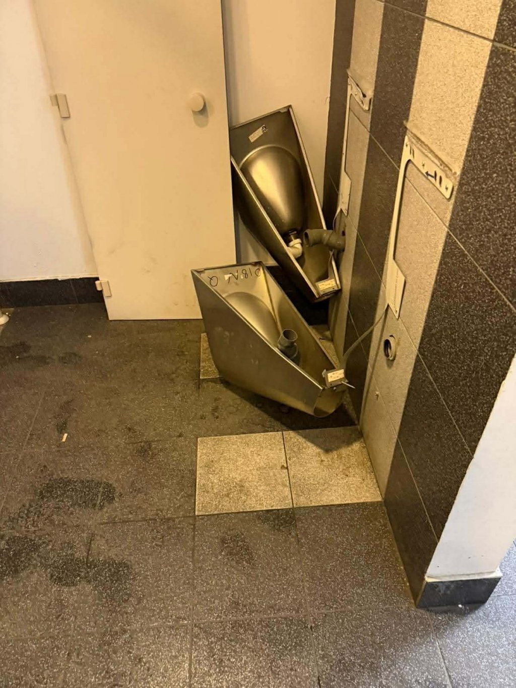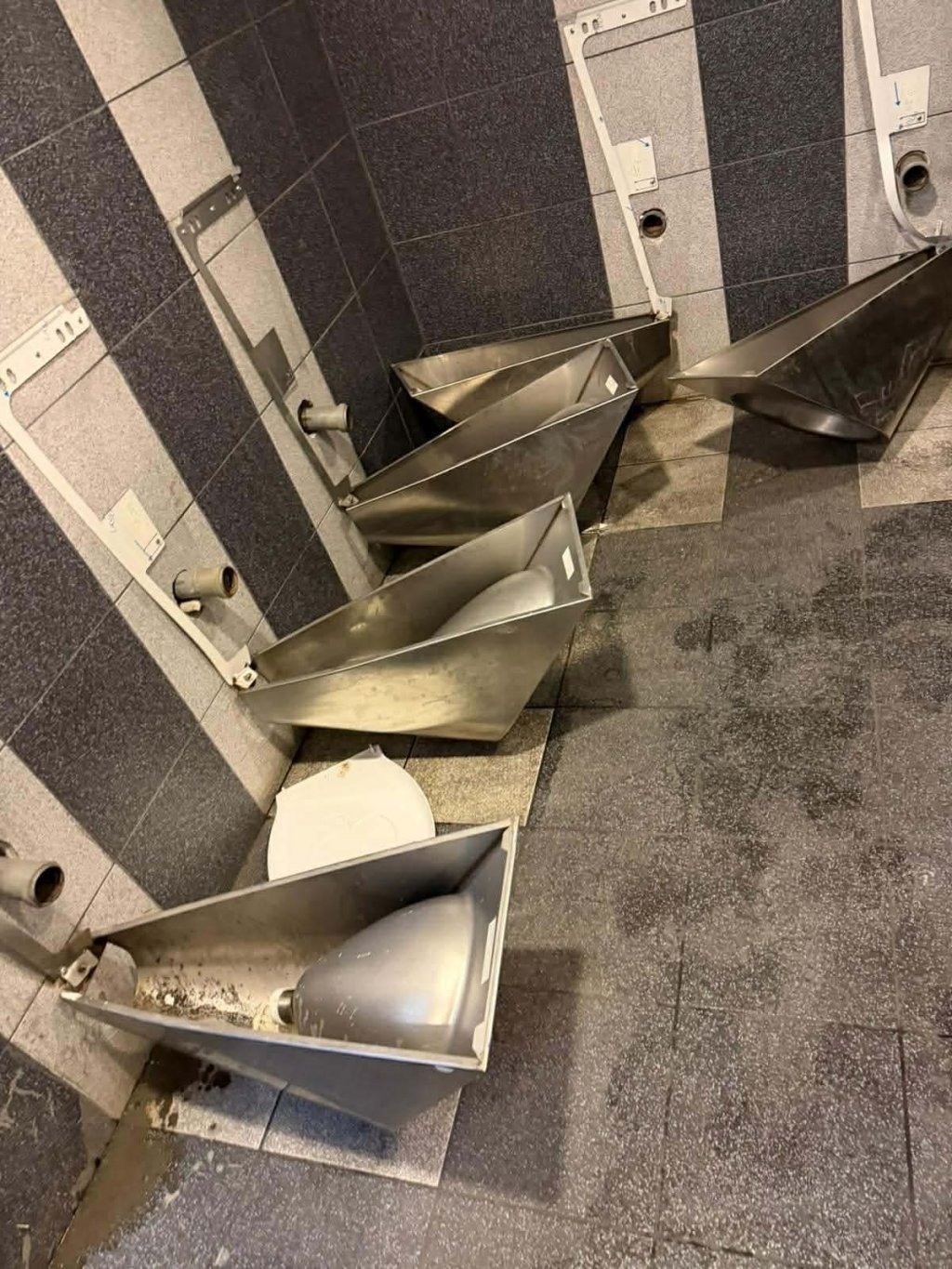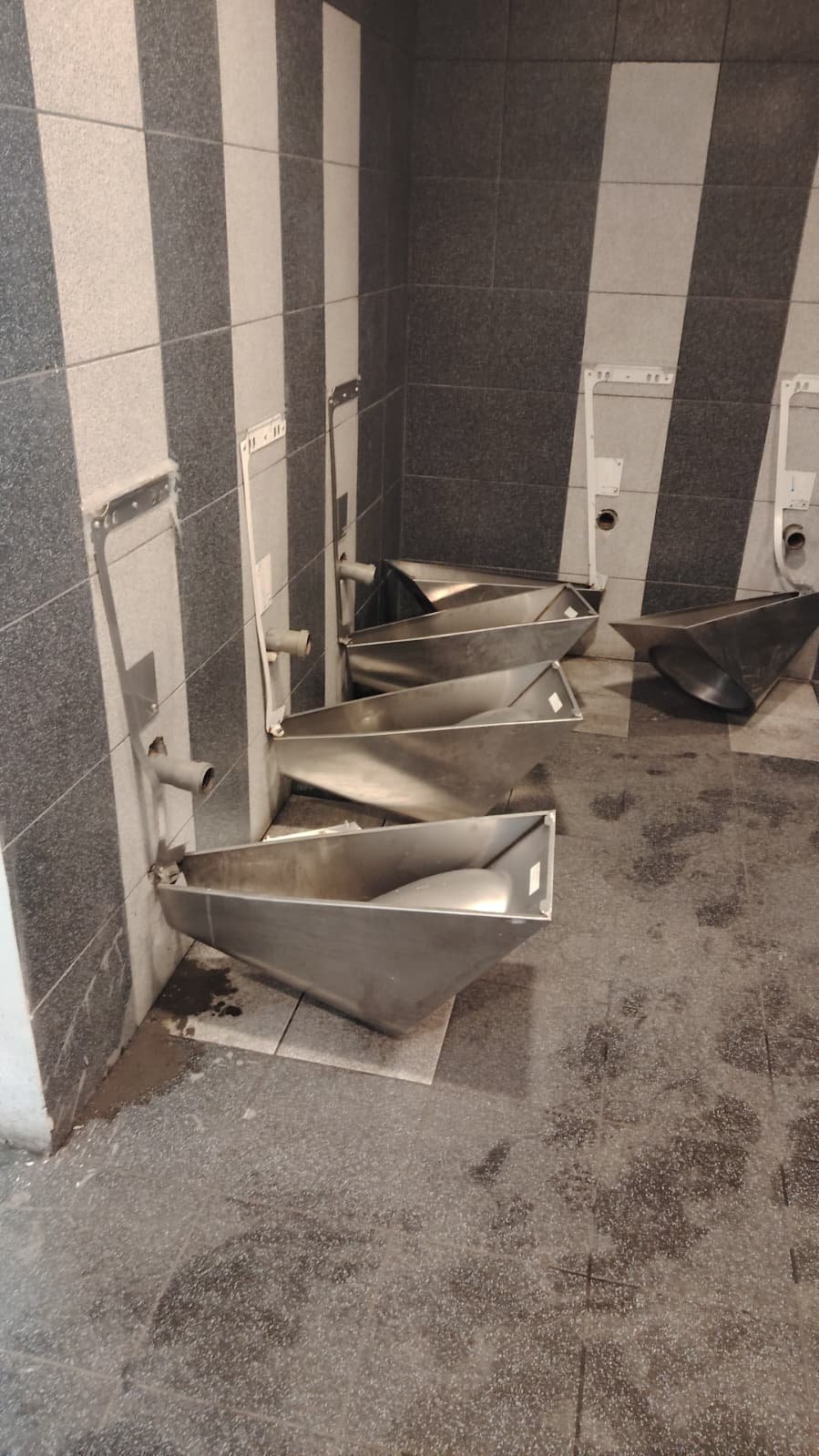 Aceștia au rupt scaune, au dat foc la scaune și au devastat efectiv băile din sectorul lor. ”Peisajul” arată ca după bombardamebte sau cutremur.