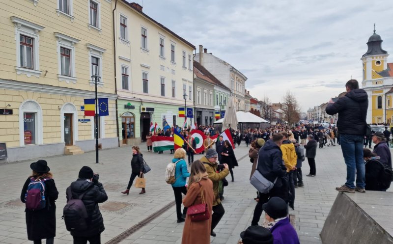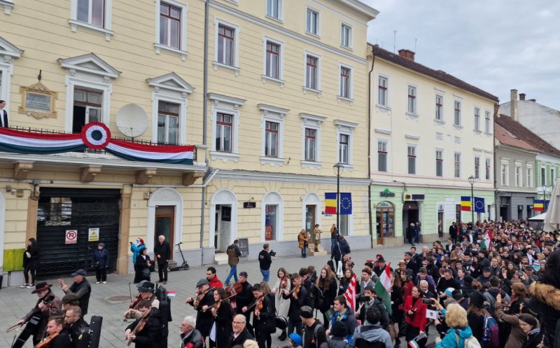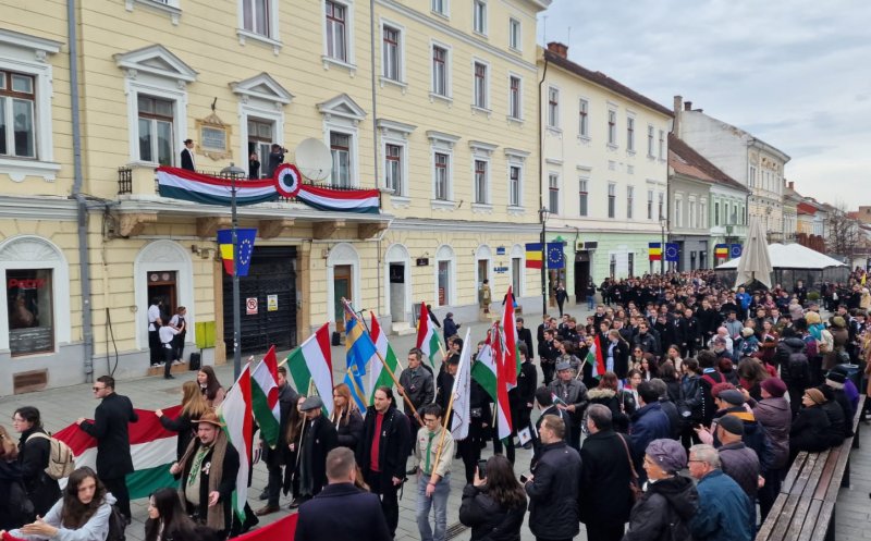 Maghiarii din Cluj s-au adunat, miercuri, de la ora 13.00, la Institutul de Teologie Protestantă din Piața Avram Iancu și au pornit într-un marș pe Bulevardul Eroilor până la Biserica Romano-Catolică ”Sf. Mihail” unde a avut loc, de la ora 14.00, o slujbă religioasă cu ocazia zilei de 15 martie, Ziua Maghiarilor de Pretutindeni.