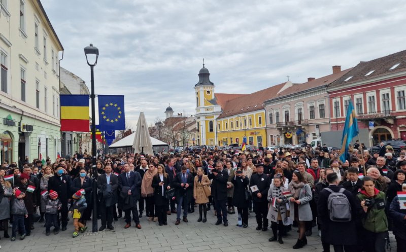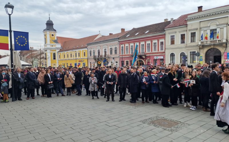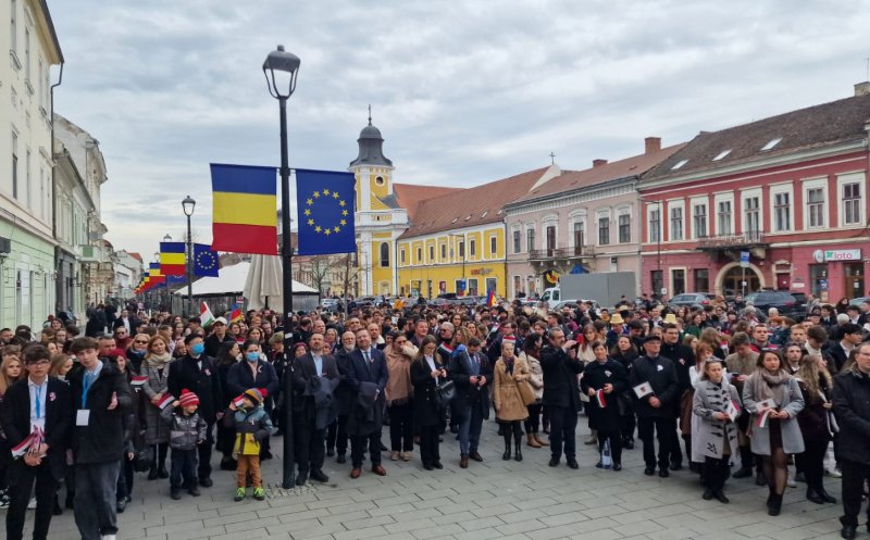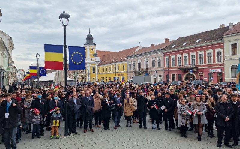 De la ora 15.00 va avea loc ceremonia centrală, care include discursuri și momente artistice, programată în Piața Unirii, în fața grupului statuar Matia Corvin.