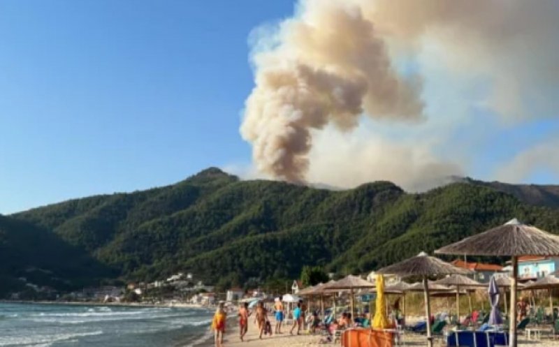 Românii aflaţi în vacanţă în Thassos au început să posteze poze și filmulețe cu incendiul pe rețelele de socializare Oamenii spun că gazdele sau personalul de la hotelurile din zonă le-au transmis să nu se panicheze.