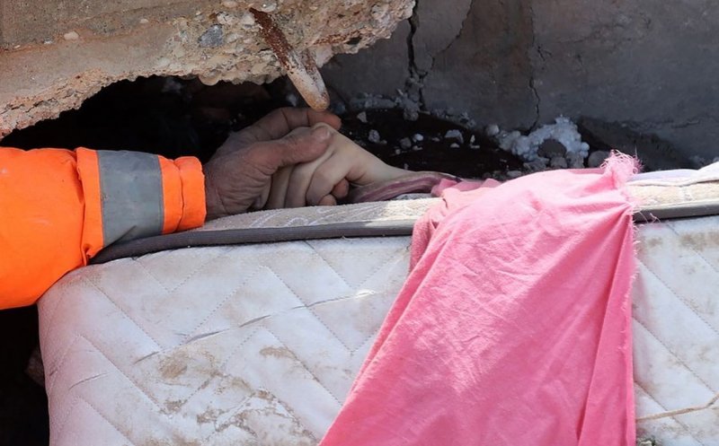 Printre cei greu încercați de această calamitate se numără și un tată, care își ține fiica moartă de mână, prinsă sub dărâmăturile unui bloc prăbușit de cutremur în regiunea turcească Kahramanmaraș. Bărbatul stă cocoșat și refuză să îi dea drumul copilului. Mesut Hancer menține conexiunea cu Irmak, fata acestuia de doar 15 ani, căreia viața i s-a scurs fără a avea vreo șansă. Foarte aproape de cei doi, un om își croiește loc printre ruine cu un baros, potrivit The Guardian.