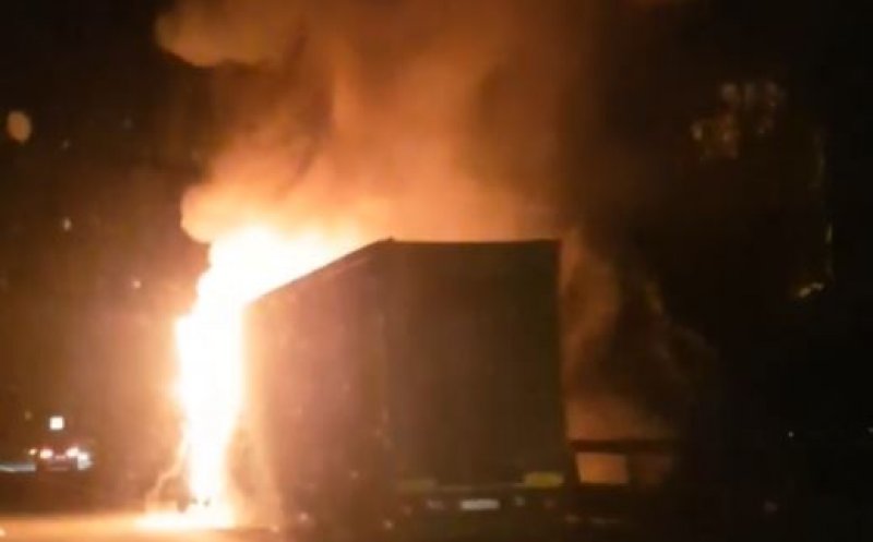 Un camion a luat foc, luni seara, pe Autostrada A10, la ieșire din Decea spre Cluj.
