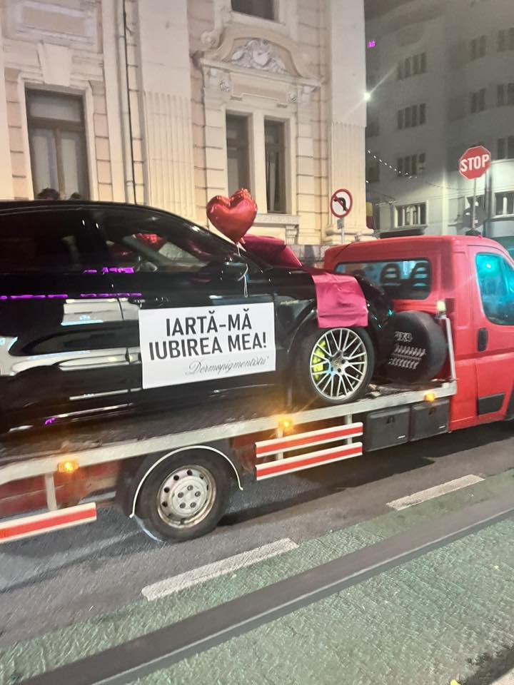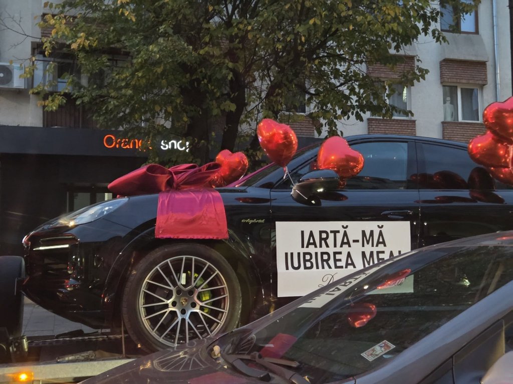 O mașină plină de inimioare și cu mesajul IARTĂ-MĂ IUBIREA MEA e căruțată pe străzile din Cluj-Napoca, iar cetățenii se întreabă dacă nu cumva s-a ridicat prea mult ștacheta la capitolul iertare.