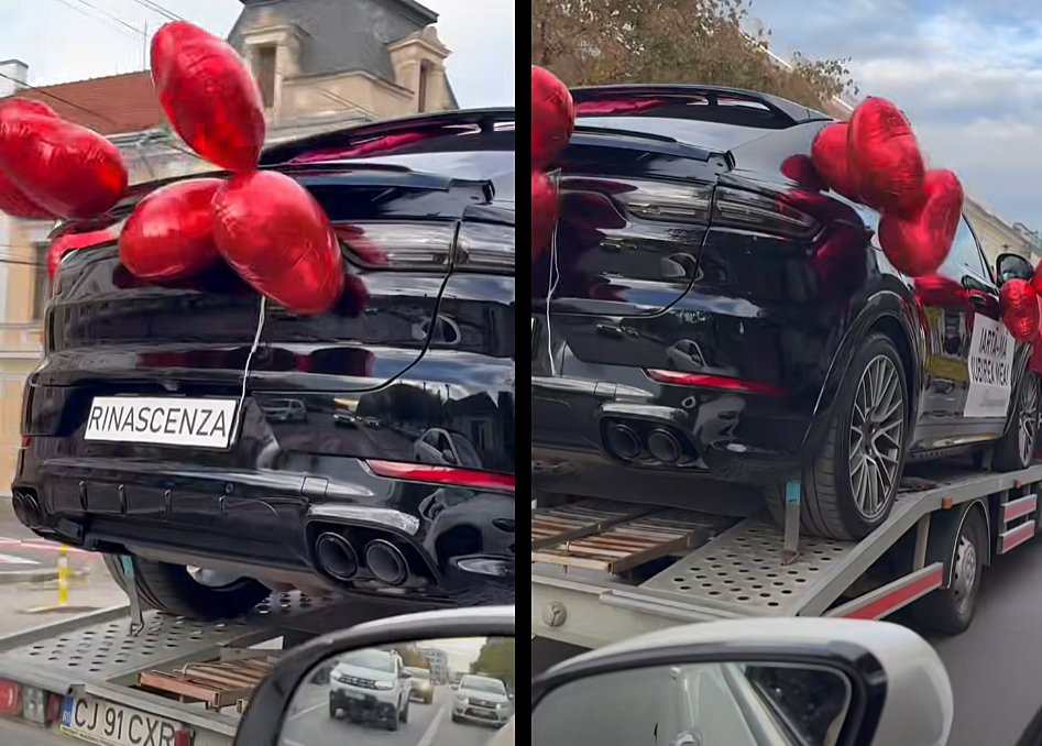 Clujenii au dat în trafic peste o mașină care la prima vedere pare a fi un cadou frumos al cuiva care greșit grav față de iubira lui, iar acum îi cere iertare cu un cadou exagerat de scump. Pe Info Trafic Cluj-Napoca au curs comentariile haioase sub filmarea de pe stăzile orașului: