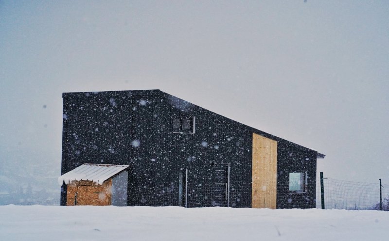 El cunoștea deja cele mai bune oferte, studiase fiecare produs în parte și a știut unde să-i trimită pe cei doi pentru fiecare etapă. Casuța e din panouri sandwich pe structura metalică, izolată la interior cu vată bazaltică. Iar la exterior e îmbrăcată în tablă neagră, potrivit lovedeco.ro.