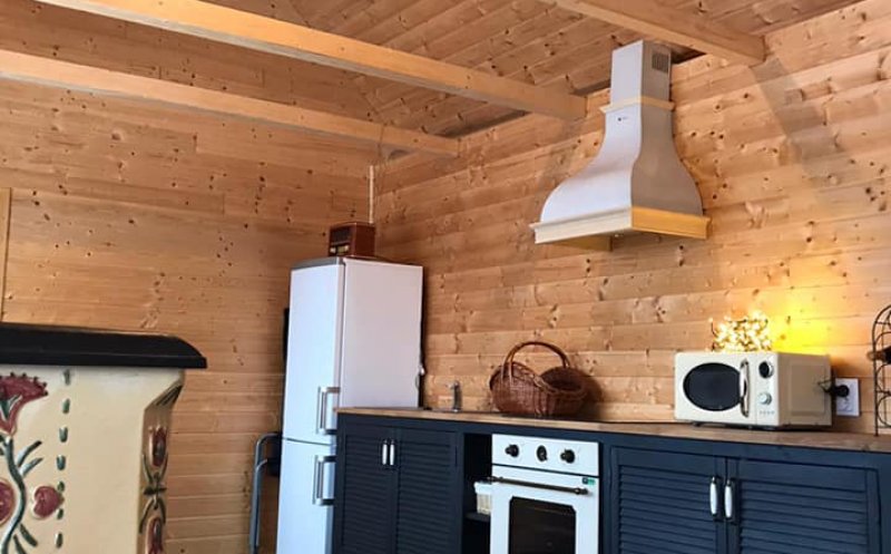 Cabana are bucătărie complet funcțională.
