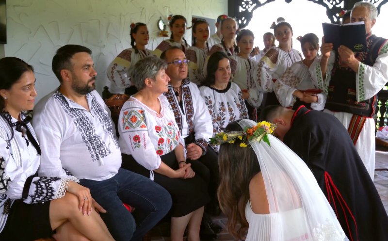 Mirele şi mireasa au luat parte dis de dimineaţă la mai multe obiceiuri de nuntă tradiţionale. "Am avut o mare bucurie să descoperim obiceiurile de nuntă la români, unele uitate", a tranmis Simion.