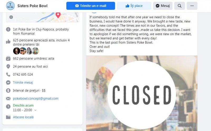 Amintim că, la început de an, înainte ca pandemia să lovească puternic, Clujul a piedut şi localurile Vorbe şi Briks.