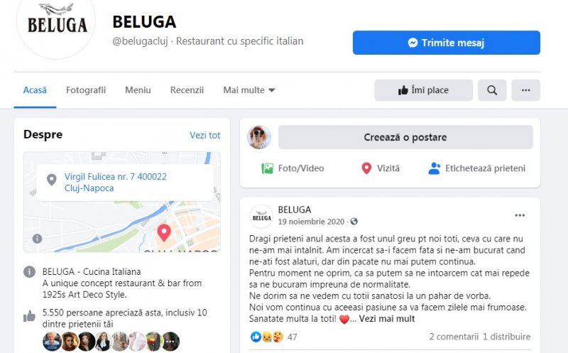 Iată câteva dintre localurile clujene care au fost nevoite să îşi închidă definitiv porţile: Red Barn, Cabinet de Vin & Cocotte, Nativ, Ham and Jam, Sisters Poke Bowl, Beluga. Multe altele ofera doar servicii de delivery sau sunt închise temporar. /Form Cafe este unul dintre puţinele locauri care a reuşit să supravieţuiască în aceste vremuri, chiar şi pe timp de iarnă, instalând terase încălzite şi iglu-uri.