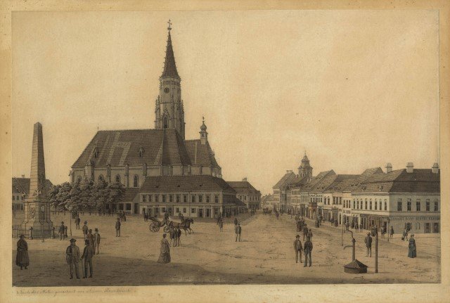 Poze și din arhiva: Europeana.eu, antebelice și interbelice, din piața centrală a Clujului.