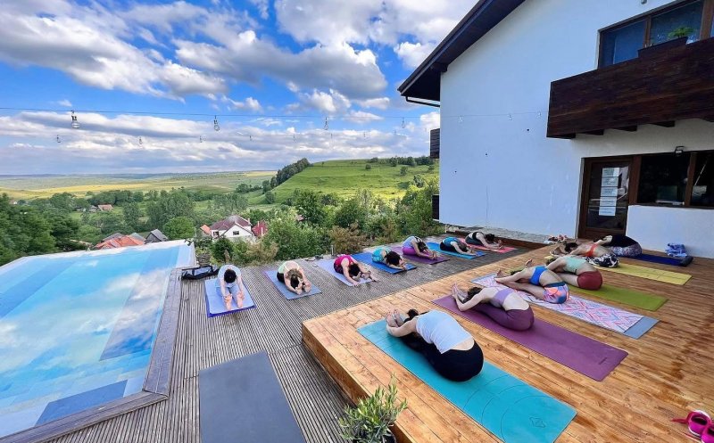 Foto Piscină ca în Bali, în județul Cluj. Este suspendată la 4m și parcă se unește cu muntele
