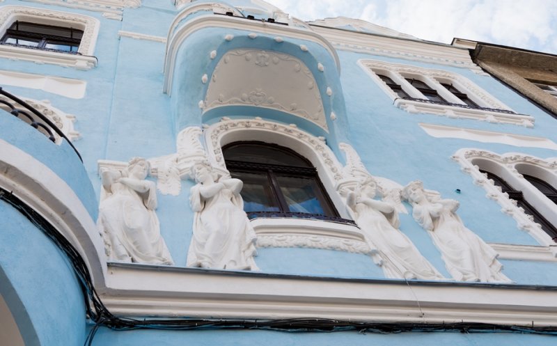 Decorul grațios cu plante de pe fațadă, motivele animale (de exemplu fluturii stilizați) și cele patru figuri feminine grațioase sunt printre semnele distinctive ale art nouveau-ului vest-european.