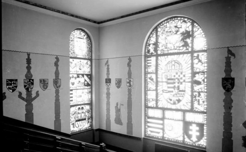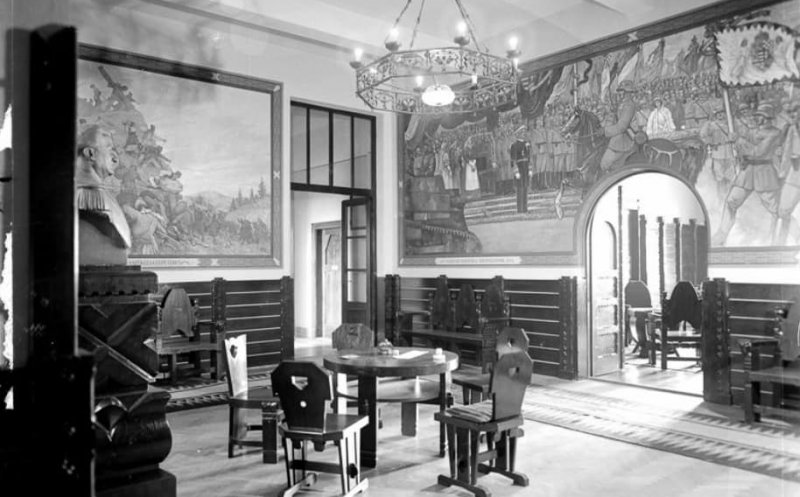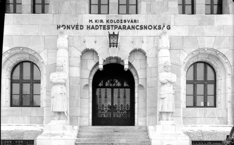 În 1941 pe strada Árpád numărul 27 (astăzi Traian) se afla o clădire neterminată a unei școli secundare. Departamentul de construcții al Ministerului Apărării din Ungaria a fost responsabil pentru finalizarea clădirii pe jumătate terminată, care dorea să evoce atmosfera Renașterii târzii. Proiectarea clădirii cu trei etaje a fost re-văzută în martie 1941 de inginerul locotenent-major János Ormay. Intrarea sa principală era păzită de două statui (acestea nu mai există astăzi). Fațada pictată, picturile pe scări și vitraliile au fost lucrările lui Jenő Haranghy. Birourile erau formate din mobilă grea sculptate din stejar, decorate cu mici sculpturi din lemn ale sculptorului ardelean István Csorvássy.