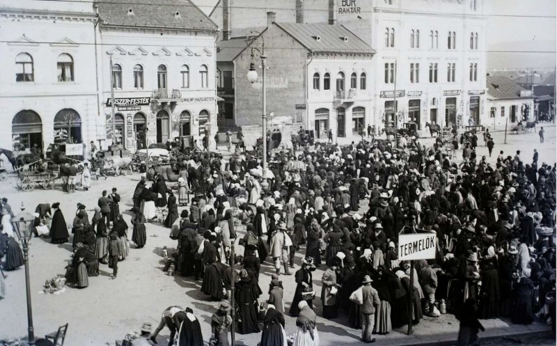 "Constructiile au aparut doar la sfarsitul secolului XIX; in 1867 a fost denumita piata Széchenyi dupa statuia dedicata lui Széchenyi István, fondatorul Academiei de Stiinte Maghiare si promotorul dezvoltarii economice a Ungariei. Odata cu linia ferata importanta zonei a crescut si piata a fost amenajata, dar tot zona de targ a ramas. Una dintre cladirile importante (vizibila in centrul imaginii color, in fundal) a fost centrul de scrima, unde si-au inceput cariera multi sportivi de renume. Zona a ramas practic neschimbata pana dupa 1945 fiind epicentrul targurilor unde hostezenii veneau sa-si vanda produsele iar clujenii se aprovizionau zi de zi. Fotografiile sunt din 1890, 1910, 1911, 1914", scrie András Vajda pe grupul de Facebook Amintiri din vechiul Cluj.