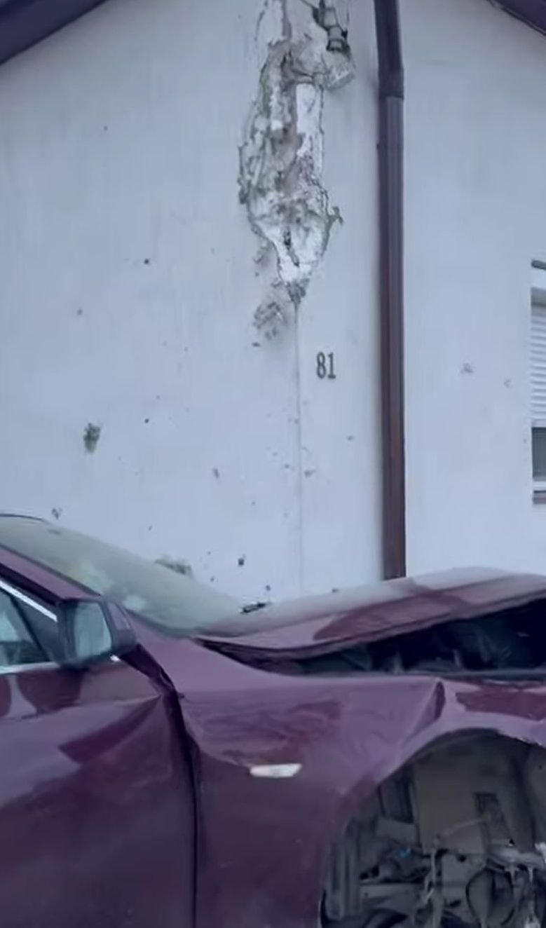 Impactul a fost extrem de puternic, provocând pagube semnificative imobilului, dar și mașinii cu număr de România, dar cu volan pe dreapta. În mod miraculos șoferul a scăpat cu viață, și chiar a încercat să convingă proprietarul casei să nu sune la poliție și ”să încheie o amiabilă”.