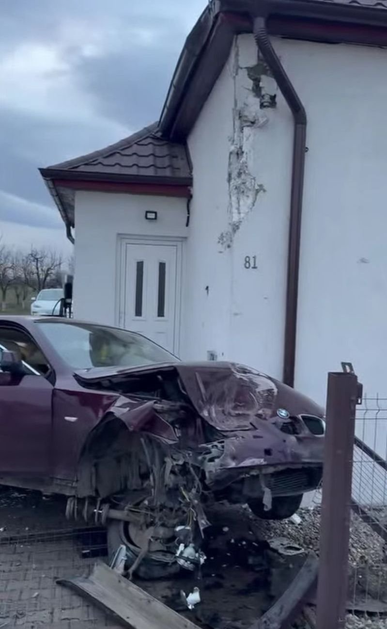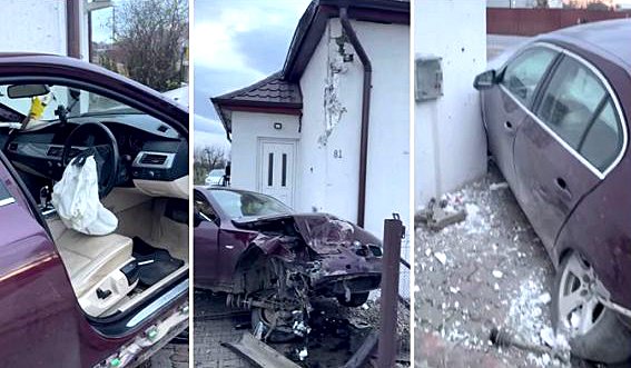Un bărbat aflat la volanul unui autoturism BMW, conducând cu viteză excesivă, a pierdut controlul asupra direcției de mers într-o curbă, a ieșit de pe carosabil și s-a izbit violent de o locuință.