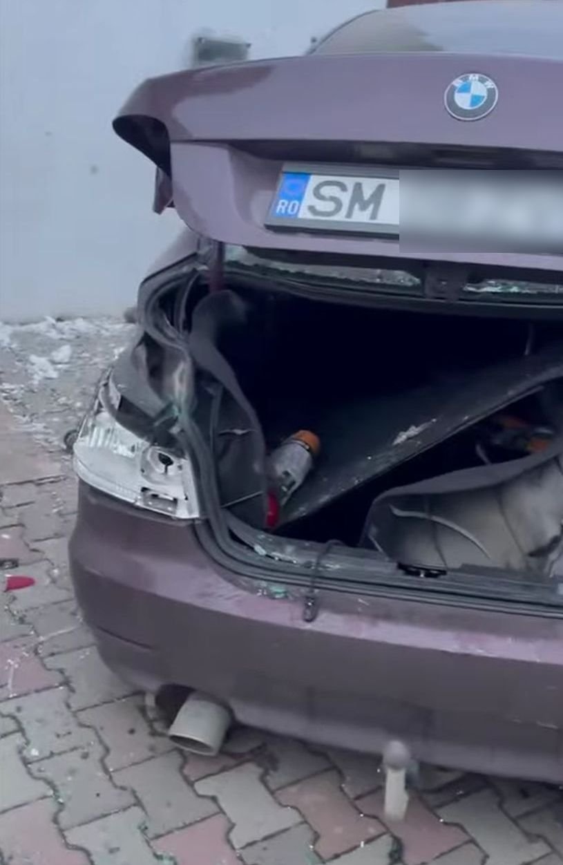 Păgubitul afirmă că poliţiştii au plecat şi l-au lăsat cu BMW-ul distrus în curte, astfel că el nu poate ieşi cu maşina din curte. Omul are filmarea cu felul în care s-a produs accidentul și a postat imaginile pe pagina sa de Facebook.