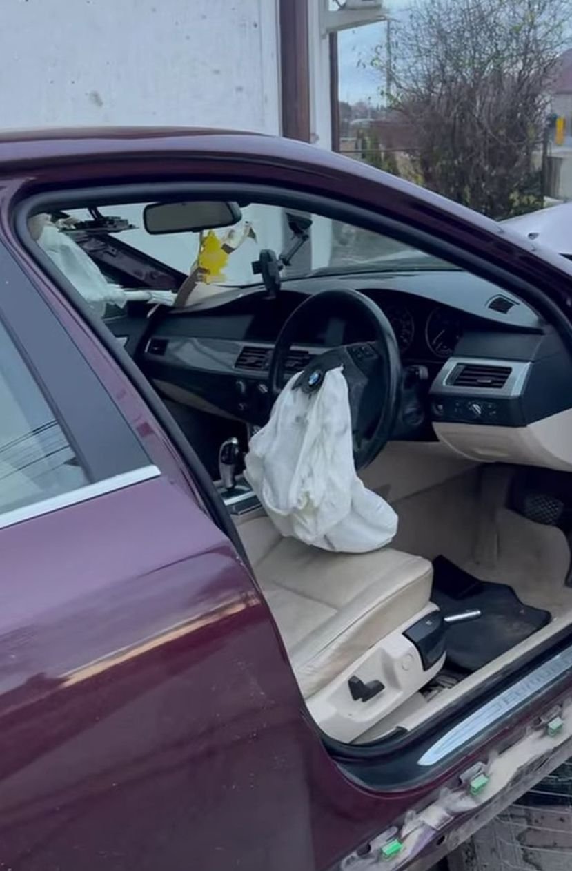 Video Foto Un bombardier a intrat la colindat cu BMW-ul într-o casă. A scăpat cu viață și a încercat să convingă gazdele să nu sune la poliție