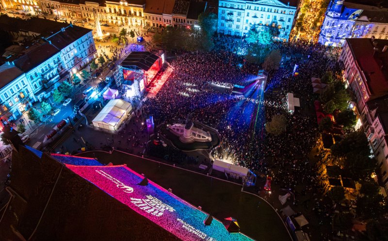 Sâmbătă seară, în Piața Unirii, spectatorii au putut urmări pe cer o impresionantă poveste despre apartenență printr-un spectacol de drone, lumini și video mapping. Concertele serii au fost susținute de Compact, Delia și Subcarpați.