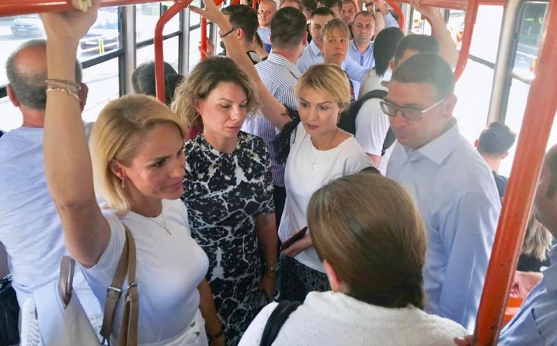 Gabriela Firea, primarul general al capitalei, a fost surprinsă într-un tramvai, imaginea amintind de o fotografie făcută edilului Emil Boc, în urmă cu câteva luni, într-un autobuz aglomerat din Bucureşti.