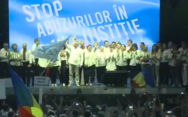 Zeci de mii de membri PSD s-au aflat sâmbătă seara în Piaţa Victoriei, la cel mai mare miting politic pe care l-au pregătit partidele de guvernământ PSD-ALDE.