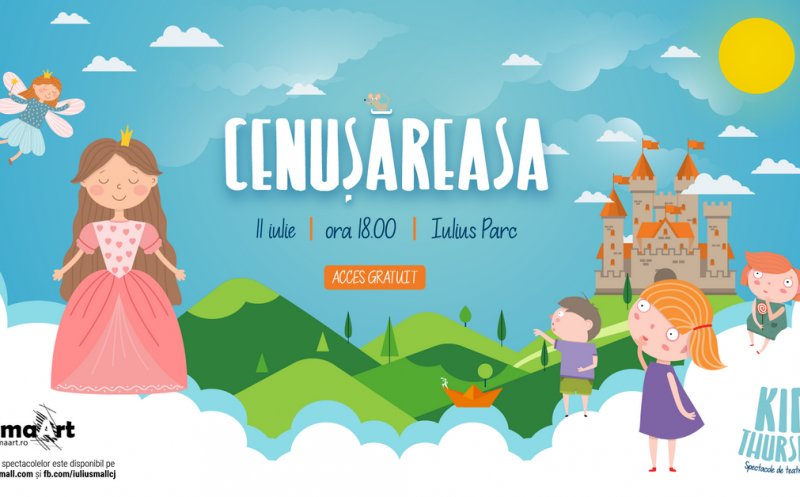 Un weekend magic, unde lumea poveștilor o întâlnește pe cea a filmului, se anunță la Iulius Mall Cluj. Kids Thursdays – Teatru de Păpuși „o aduce” joi, 11 iulie 2024, în Iulius Parc, pe „Cenușăreasa”. În drum spre petrecerea regală, îndrăgita prințesă se va opri să le povestească celor mici aventura sa, începând cu ora 18:00. Intrarea este gratuită. Partenerii evenimentului sunt Anima Art, iar programul complet al Kids Thursdays îl găsești pe pagina Iulius Mall Cluj.