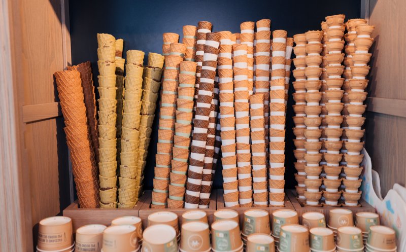 În locație sunt disponibile peste 20 de arome, iar în fiecare lună sunt introduse produse noi: torturi, deserturi la pahar, clătite și, bineînțeles, arome sezoniere de gelato – inspirate de anotimpuri, preferințele clienților și poveștile gusturilor italienești. Gama este completată de brioșe, milkshake-uri și torturi semifreddo, toate servite într-un decor cald și elegant, care pune accent pe ospitalitate și rafinament.