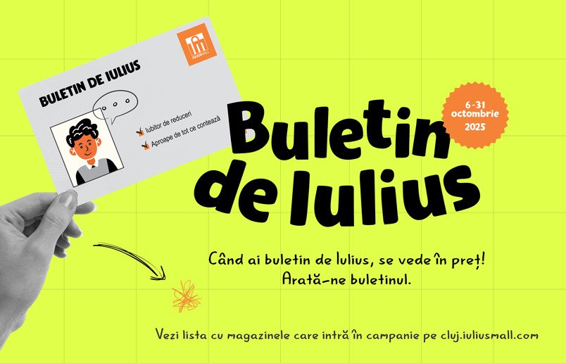 Campania „Buletin de Iulius” este valabilă până pe 31 octombrie 2025, așa că mai ai puțin timp la dispoziție să te bucuri de ofertele exclusive, la magazinele tale favorite din Iulius Mall!