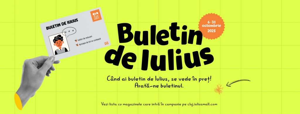 Buletin ai, carnet de student - cel mai probabil, posibil să deții chiar și permis de conducere Însă „buletin de Iulius” ai? Intră în posesia celui mai cool „ID”, care îți aduce oferte speciale la o serie de locații din Iulius Mall. „Buletinul de Iulius” include 11 promoții, iar dacă le bifezi pe toate, primești un voucher pe care îl poți utiliza pentru a achita parcarea.