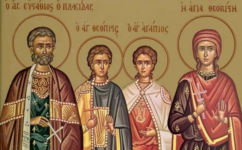 După ce împăratul a murit, noul împărat i-a cerut lui Eustatie să renunțe la credința creștină și să se închine idolilor. Eustatie a refuzat cu obstinație, așa că împăratul a poruncit ca el și familia lui să fie aruncați la fiare. Însă animalele nu le-au făcut nimic. Apoi, au fost aruncați într-un cazan mare de aramă încins, dar nici acolo nu au pățit nimic. După trei zile, trupurile lor au fost scoase întregi, fără nicio arsură, potrivit crestinortodox.ro.