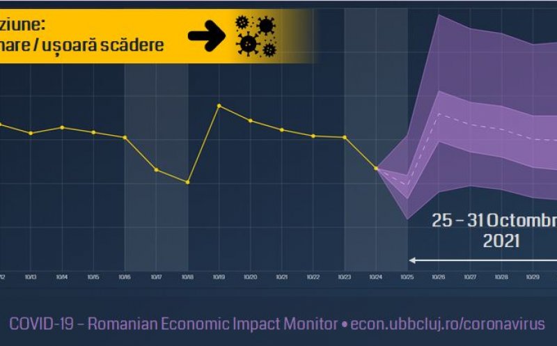 „Modelul nostru de previziune estimează că în cursul acestei săptămâni vom ajunge pe platoul valului patru, asistând la o stagnare sau chiar la o ușoară scădere a numărului cazurilor zilnice față de săptămâna trecută”, se arată în mesajul cercetătorilor UBB.