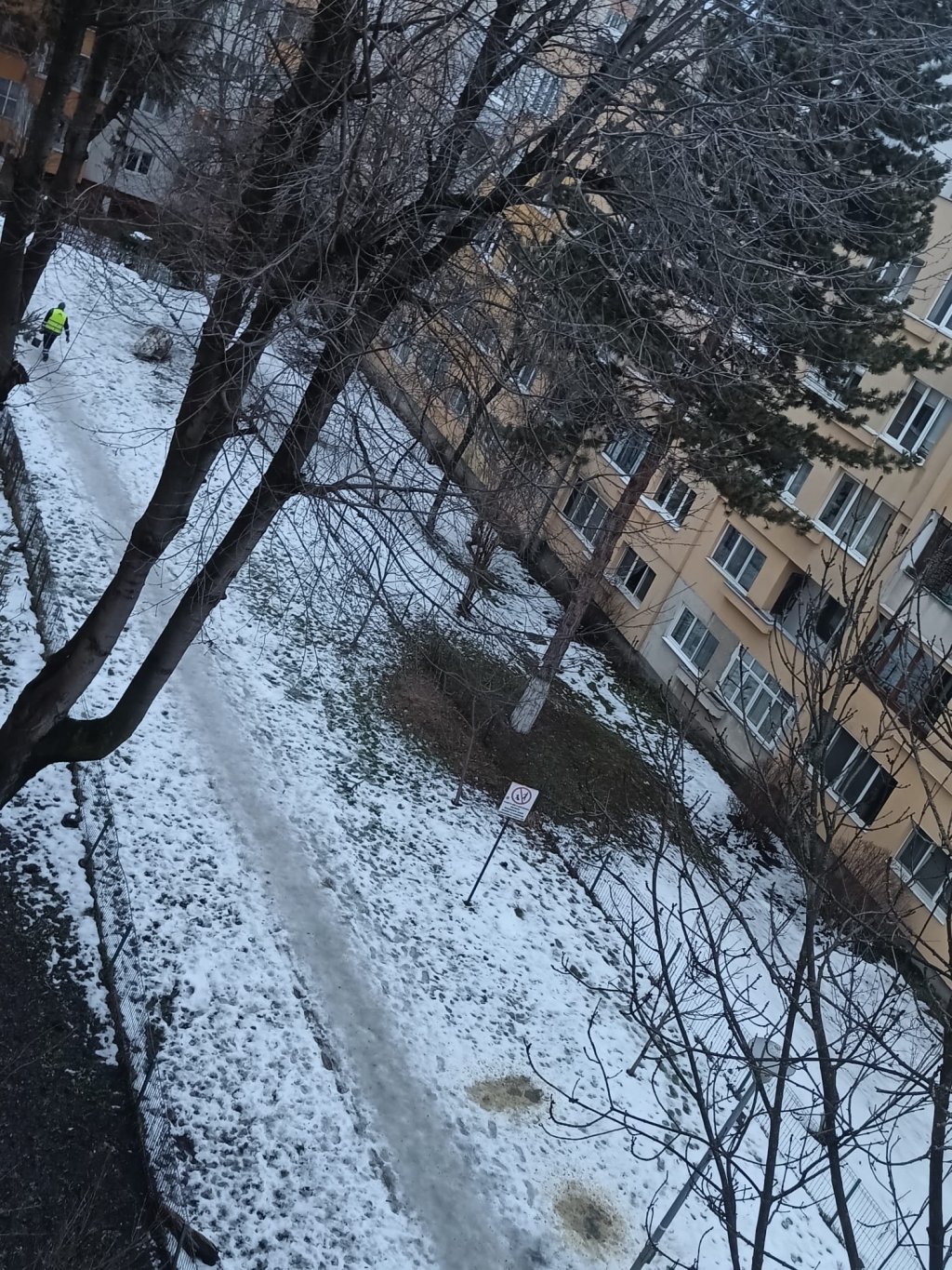 Așa că, decât nimic, ”mere și așa”. Poate în alte zone din oraș nici nu a ajuns picior de angajat de la deszăpezire&dezghețare&etc te gândești și spui în gând Doamne ajută-le să nu se dea bătuți de pauze și să câștige meciul cu gheața.